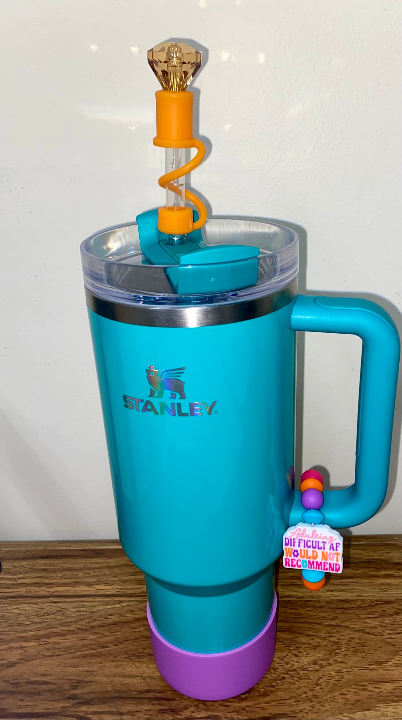 Accessorize your favorite tumbler cup with this adorable Orange Diamond with Orange Base Straw Topper. This cover fits 10mm/0.4inch straws and is compatible with Stanley 30 & 40 oz tumblers straws. Made from silicone and resin.