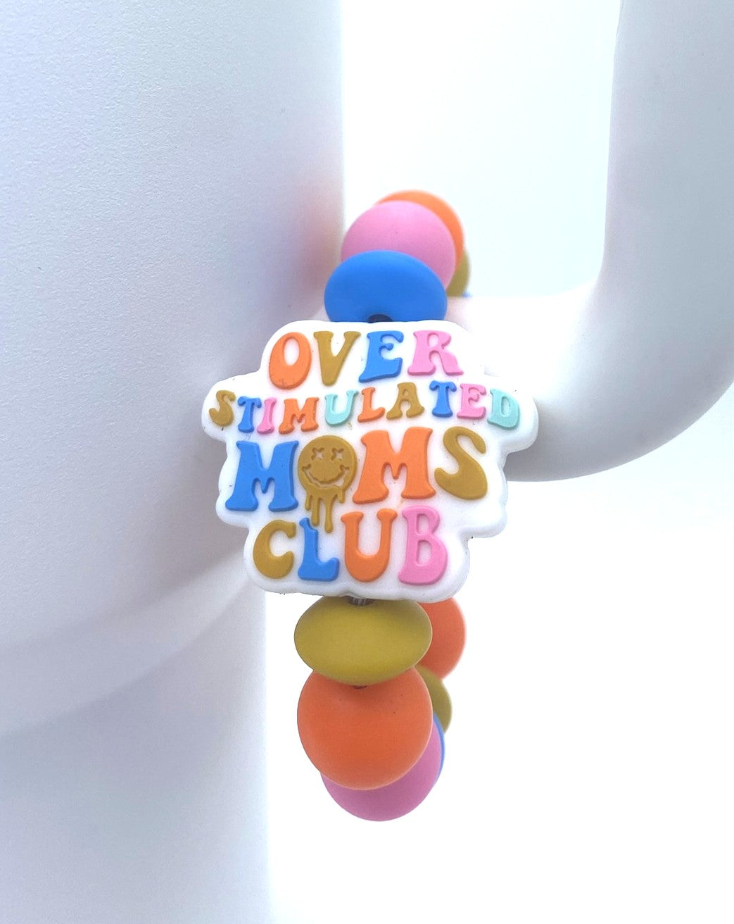 Accessorize your tumbler cup with this funny Over Stimulated Moms Club silicone bead cup charm. These cup charms are made to clasp around your favorite tumbler's handle. They are simple to take off and put on, so depending on your mood for the day, you can swap them out easily!