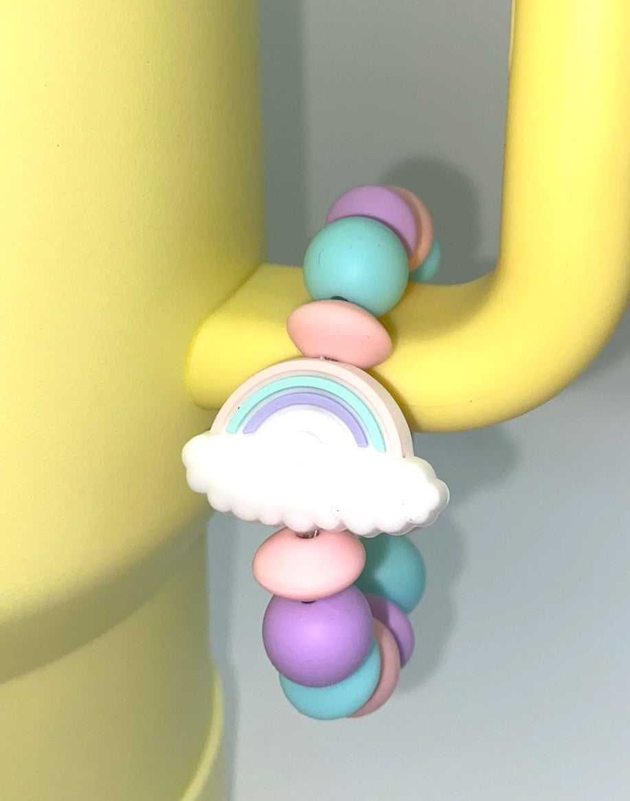 Accessorize your tumbler cup with this adorable Pastel Rainbow silicone bead cup charm. These cup charms are made to clasp around your favorite tumbler's handle. They are simple to take off and put on, so depending on your mood for the day, you can swap them out easily!