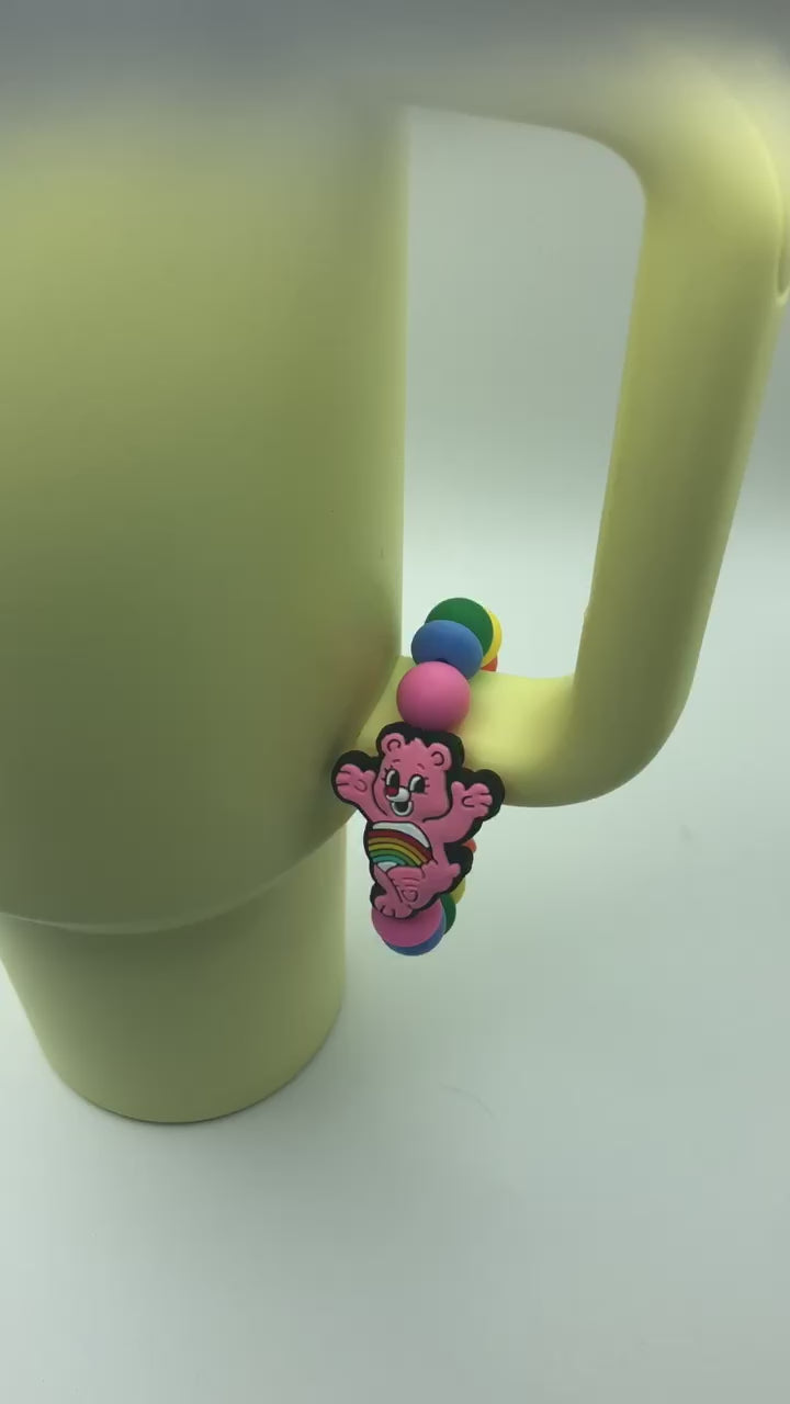 Accessorize your tumbler cup with this adorable Pink Happy Bear silicone bead cup charm. These cup charms are made to clasp around your favorite tumbler's handle. They are simple to take off and put on, so depending on your mood for the day, you can swap them out easily!