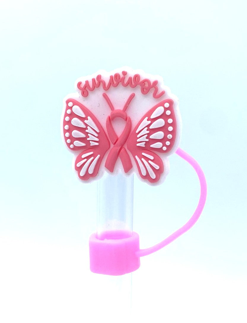Accessorize your favorite tumbler cup with this beautiful Pink Ribbon Breast Cancer Butterfly Straw Topper. This cover fits 10mm/0.4inch straws and is compatible with Stanley 30 & 40 oz tumblers straws. Made from silicone.