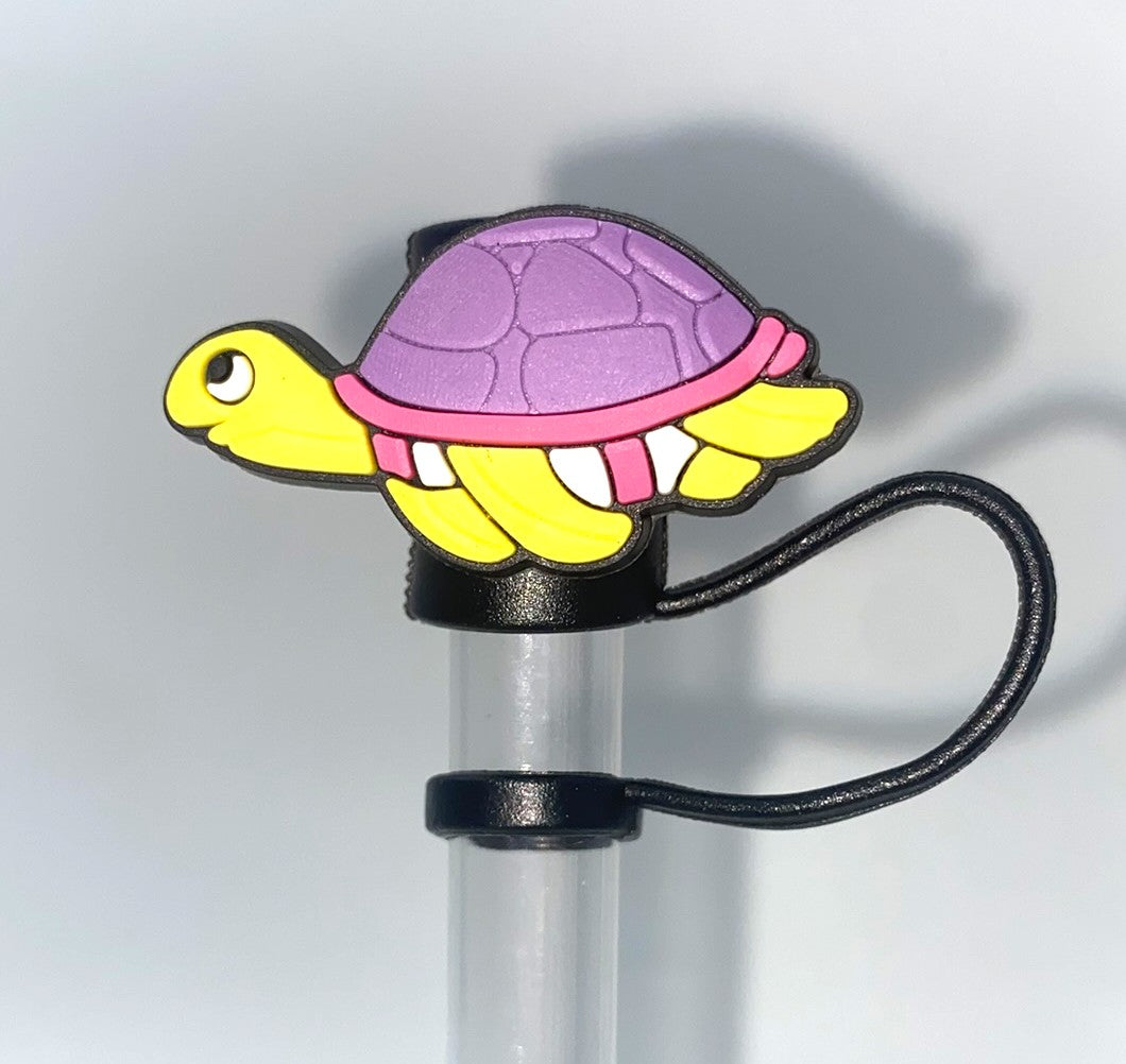 Accessorize your favorite tumbler cup with this adorable Purple Sea Turtle straw topper. This cover fits 10mm/0.4inch straws and is compatible with Stanley 30 & 40 oz tumblers straws. Made from silicone.