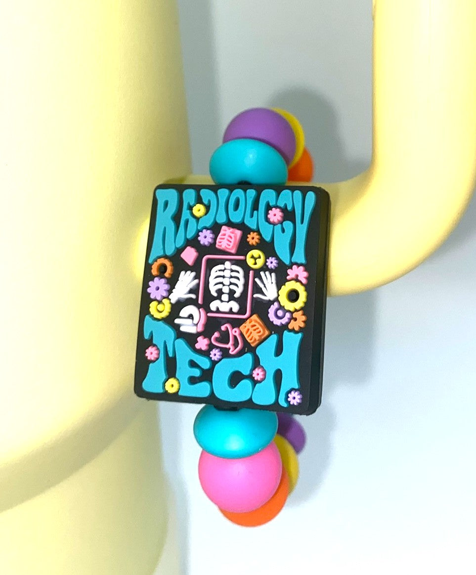 Accessorize your tumbler cup with this amazing X-Ray Radiology Tech Medical silicone bead cup charm. These cup charms are made to clasp around your favorite tumbler's handle. They are simple to take off and put on, so depending on your mood for the day, you can swap them out easily!
