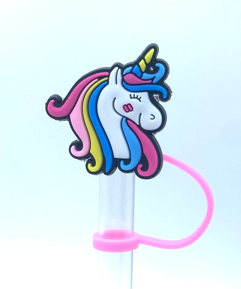 Accessorize your favorite tumbler cup with this adorable Rainbow Unicorn Head Straw Topper. This cover fits 10mm/0.4inch straws and is compatible with Stanley 30 & 40 oz tumblers straws. Made from silicone.