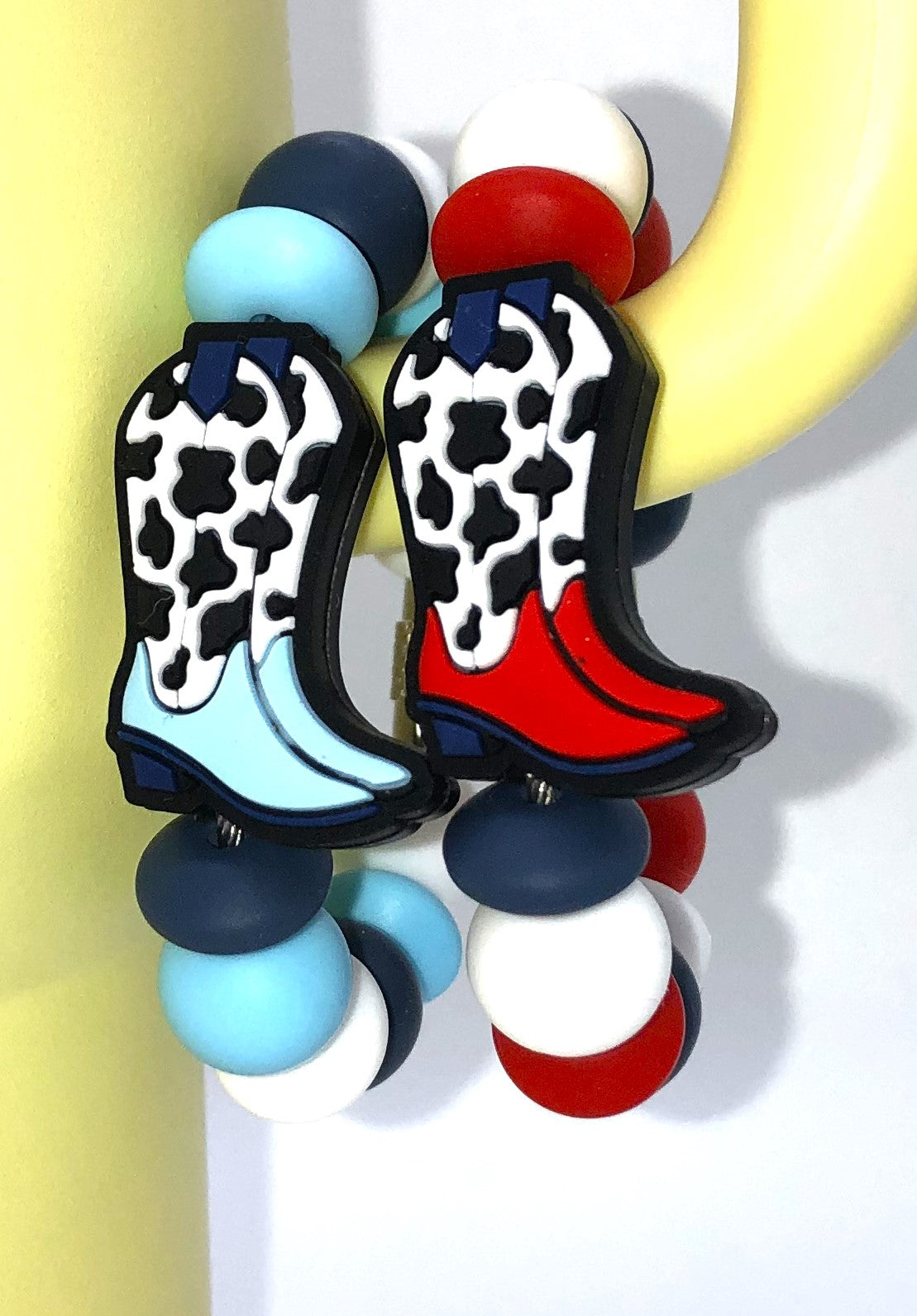 Red OR Blue Cow Print Cowboy Boots Tumbler Cup Handle Charm