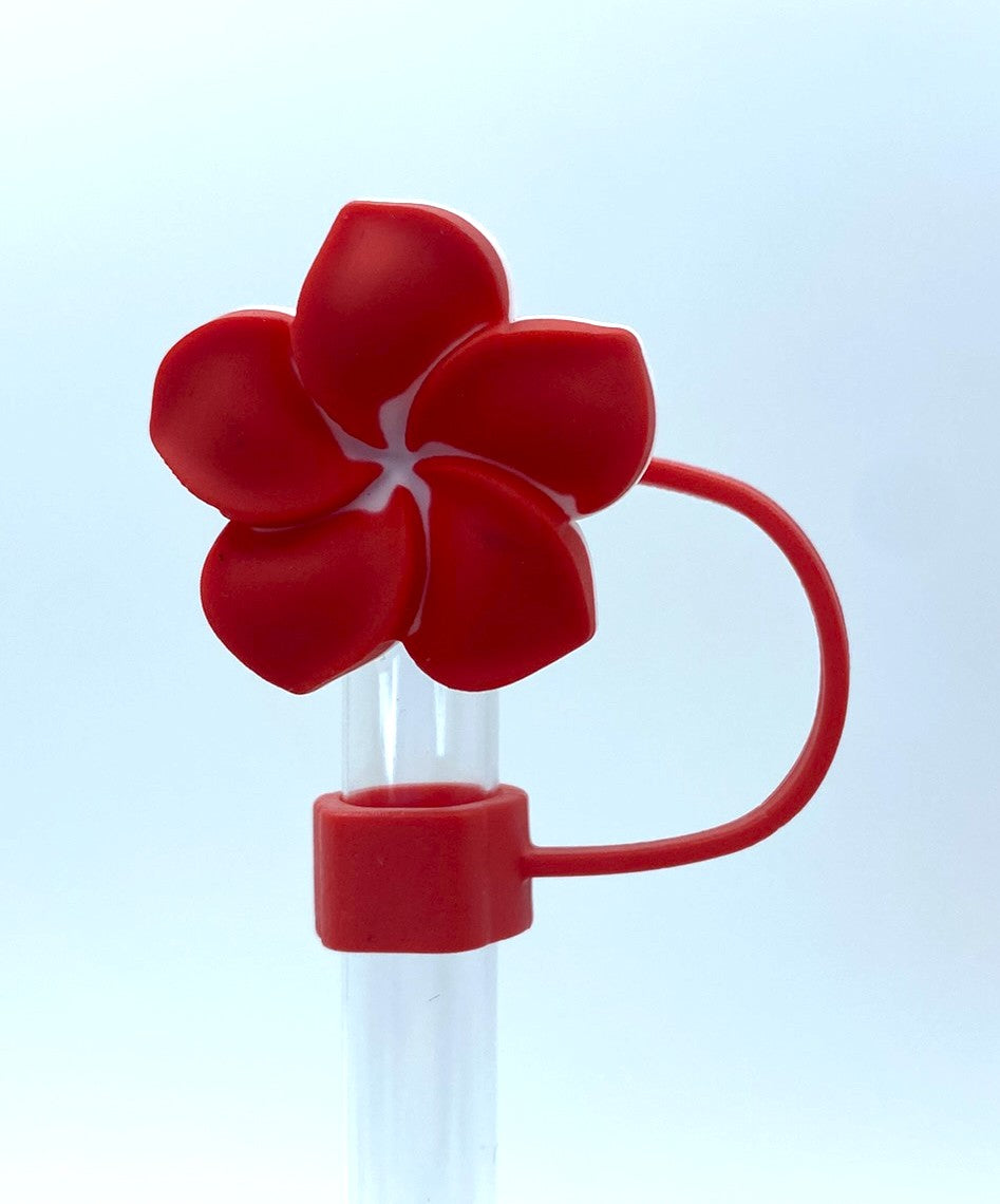 Accessorize your favorite tumbler cup with this adorable Red Plumeria Flower Straw Topper. This cover fits 10mm/0.4inch straws and is compatible with Stanley 30 & 40 oz tumblers straws. Made from silicone.