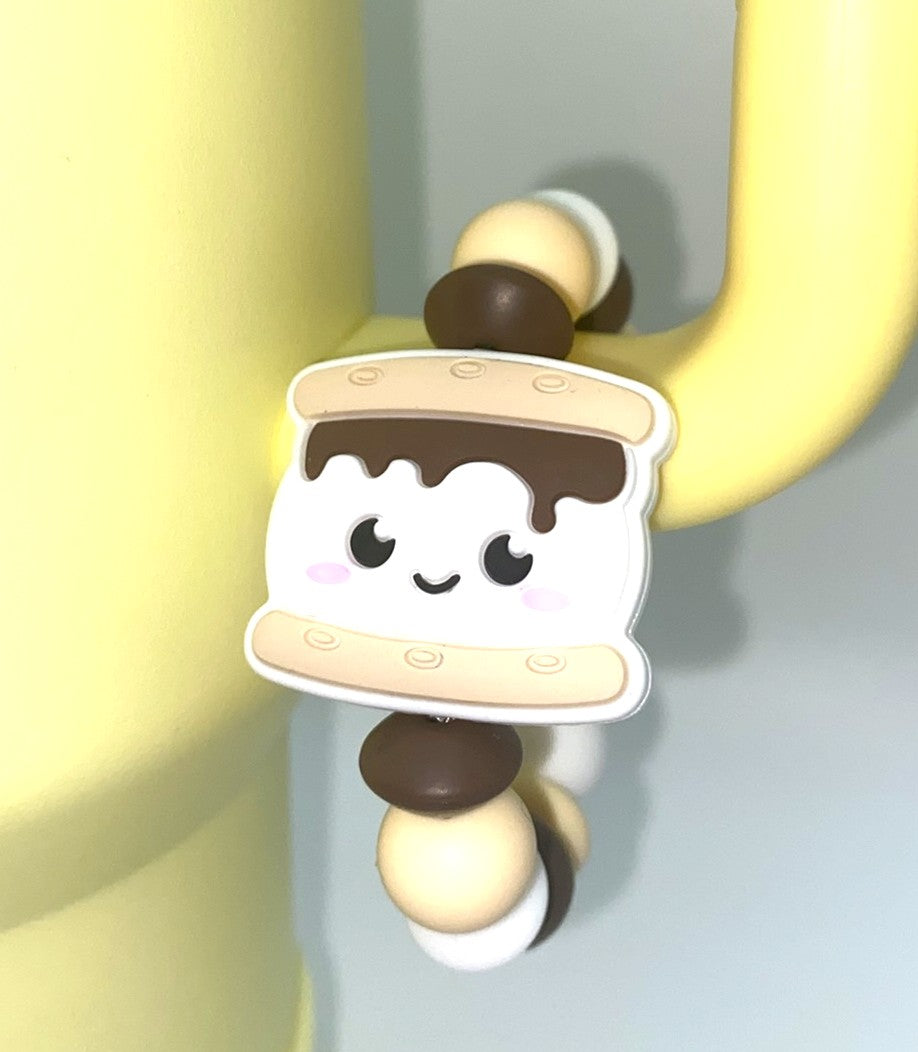 Accessorize your tumbler cup with this adorable Smiling Smore silicone bead cup charm. These cup charms are made to clasp around your favorite tumbler's handle. They are simple to take off and put on, so depending on your mood for the day, you can swap them out easily!