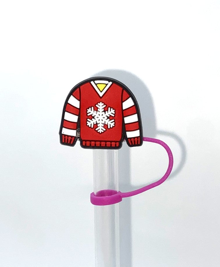 Accessorize your favorite tumbler cup with this adorable Snowflake Christmas Sweater Straw Topper. This cover fits 10mm/0.4inch straws and is compatible with Stanley 30 & 40 oz tumblers straws. Made from silicone.
