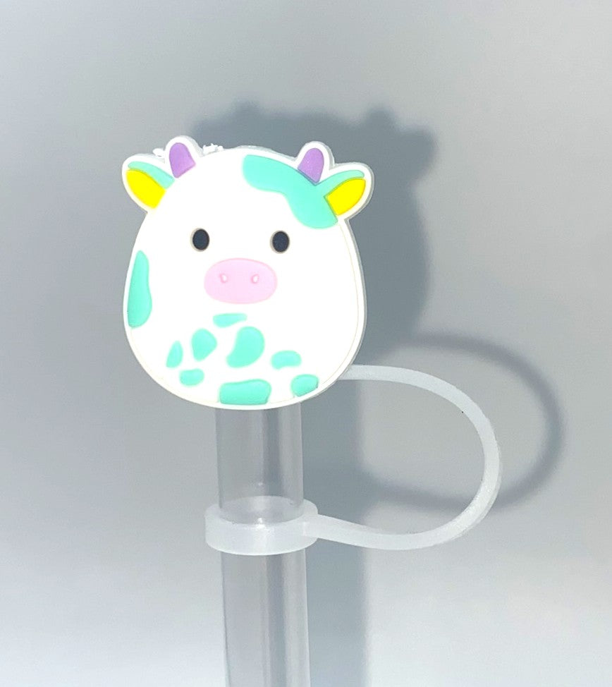 Accessorize your favorite tumbler cup with this adorable Squishmallow White w/Mint Spots Cow Straw Topper. This cover fits 10mm/0.4inch straws and is compatible with Stanley 30 & 40 oz tumblers straws. Made from silicone.