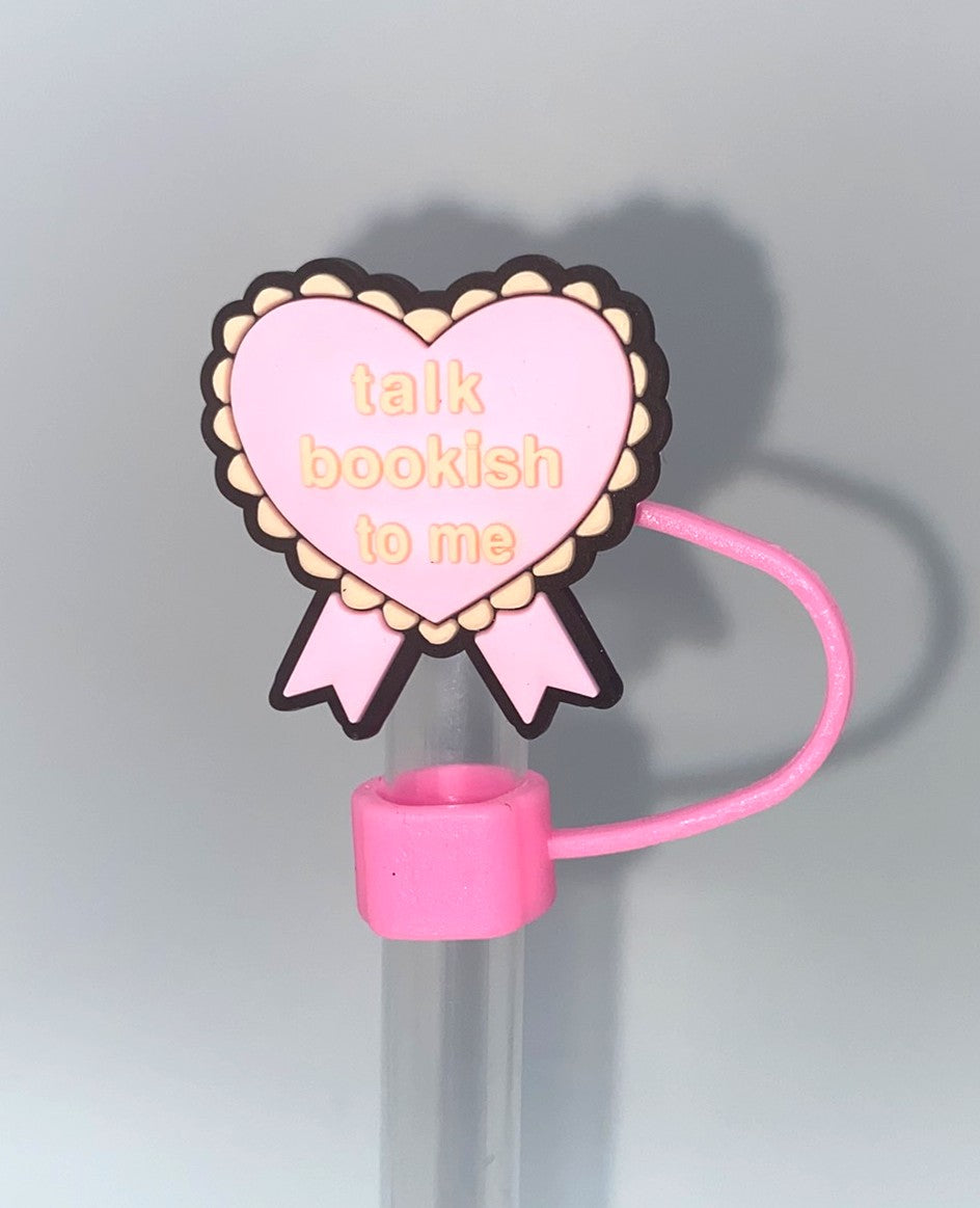 Talk Bookish To Me Heart Bookmark Straw Topper