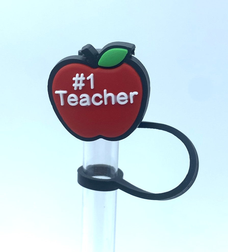 Accessorize your favorite tumbler cup with this adorable #1 Teacher Apple Straw Topper. This cover fits 10mm/0.4inch straws and is compatible with Stanley 30 & 40 oz tumblers straws. Made from silicone.