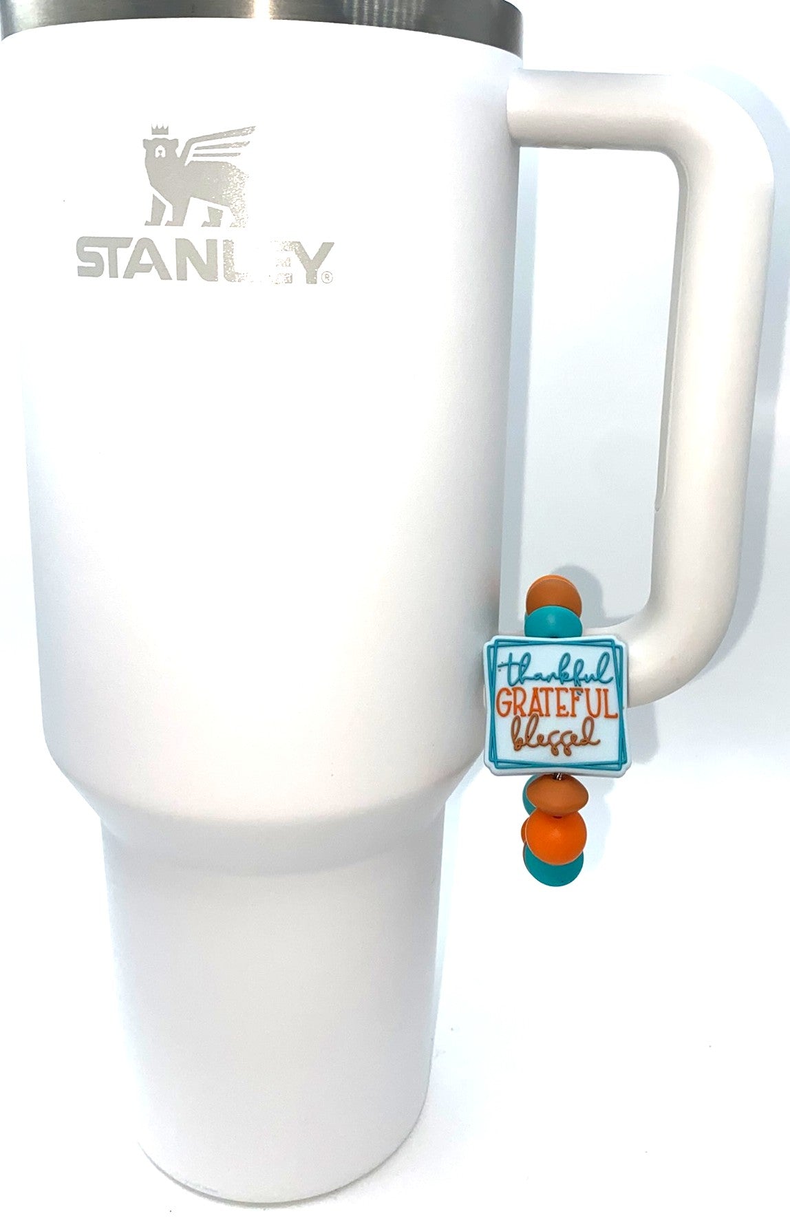 Accessorize your tumbler cup with this beautiful Thankful Grateful Blessed Thanksgiving silicone bead cup charm. These cup charms are made to clasp around your favorite tumbler's handle. They are simple to take off and put on, so depending on your mood for the day, you can swap them out easily!