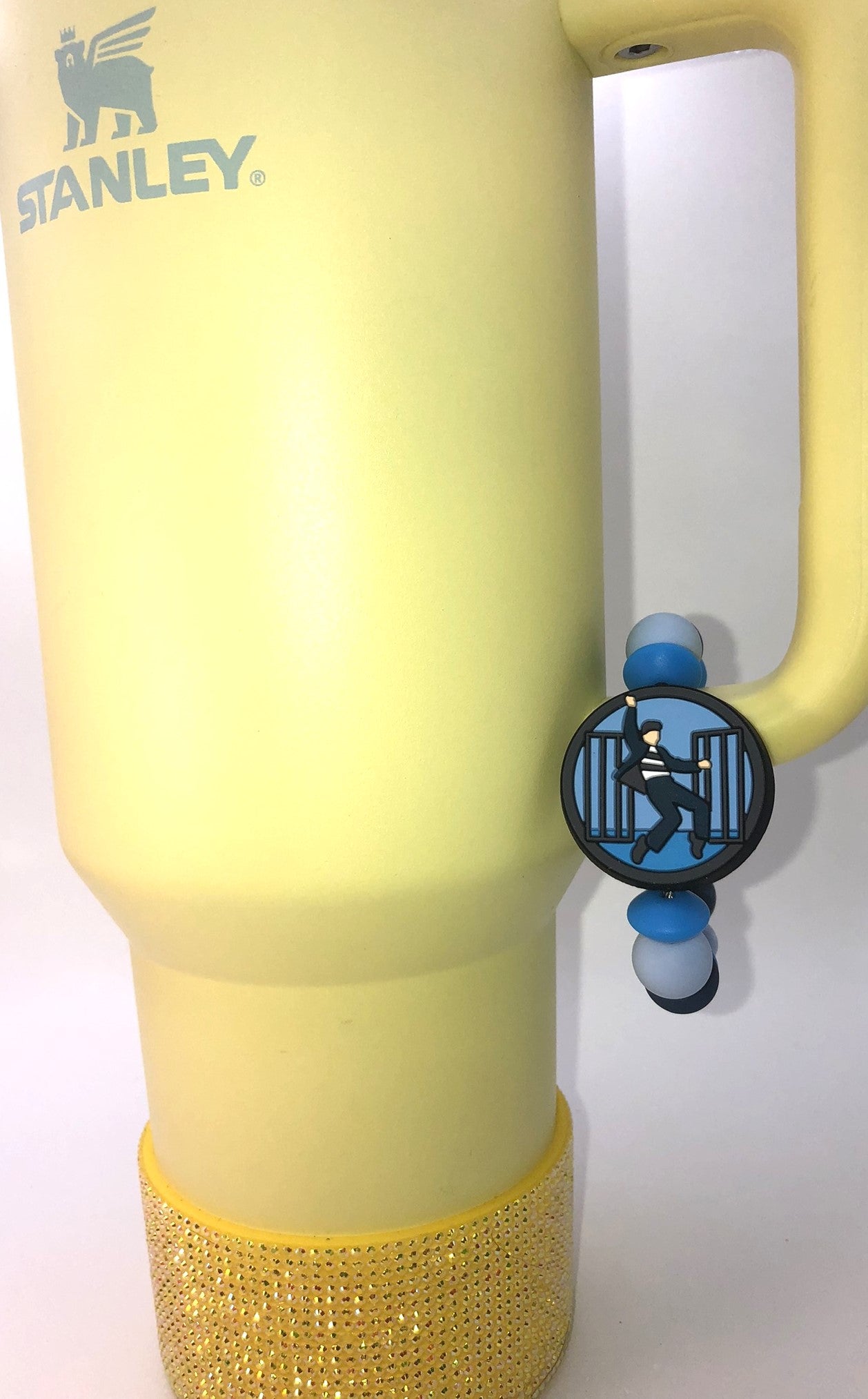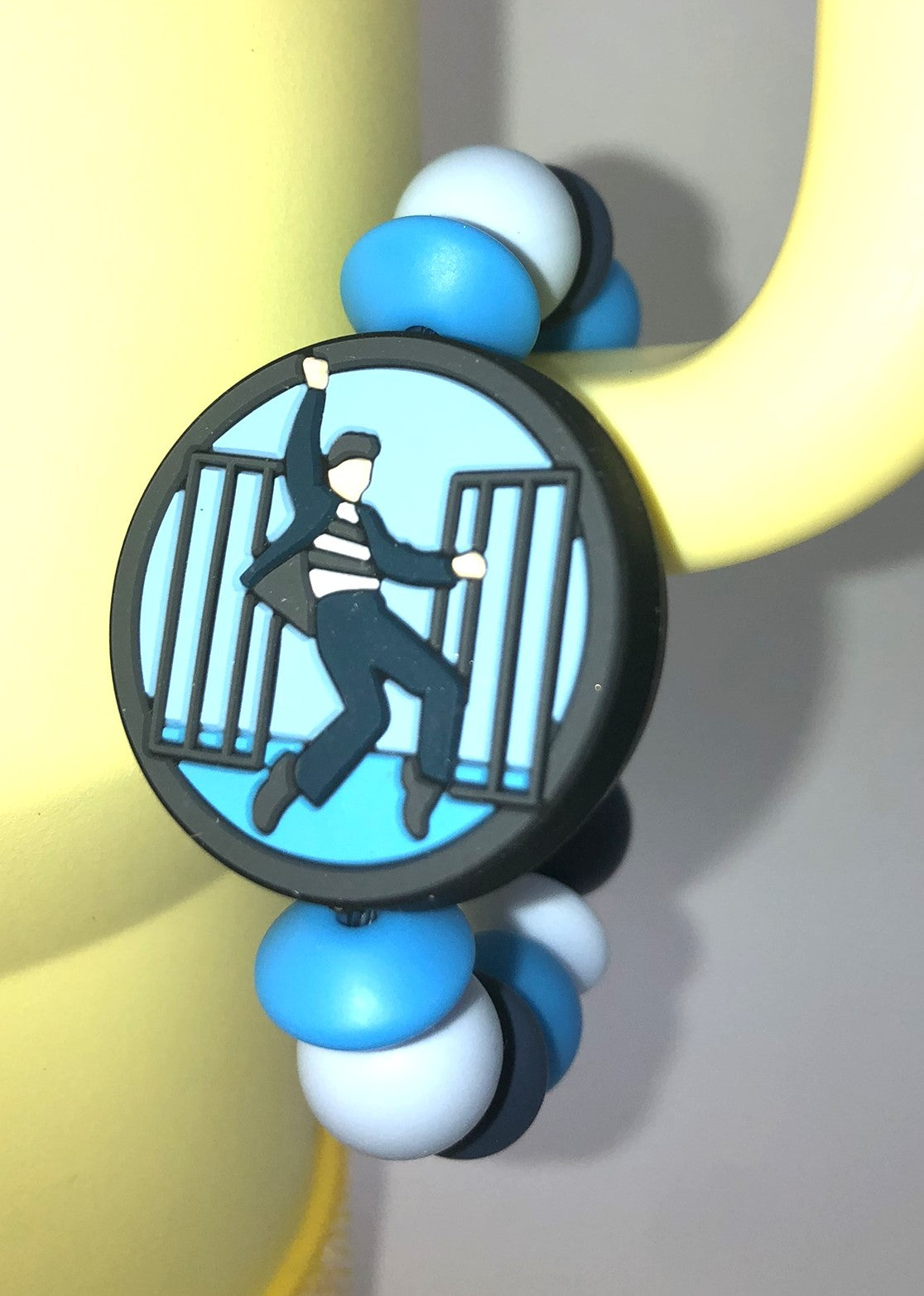 Accessorize your tumbler cup with this nostalgic Elvis The King Jailhouse Rock Round silicone bead cup charm. These cup charms are made to clasp around your favorite tumbler's handle. They are simple to take off and put on, so depending on your mood for the day, you can swap them out easily!