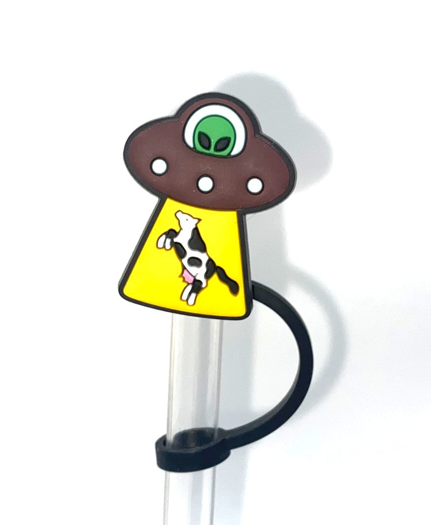 Accessorize your favorite tumbler cup with this adorable Brown UFO Beaming Up Cow Straw Topper. This cover fits 10mm/0.4inch straws and is compatible with Stanley 30 & 40 oz tumblers straws. Made from silicone & PVC plastic BPA free.