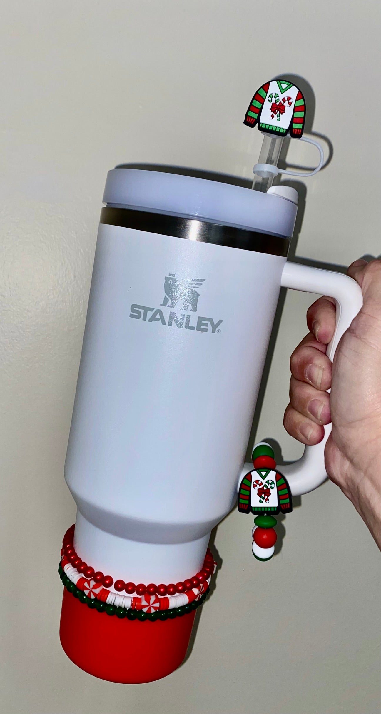 Accessorize your favorite tumbler cup with this adorable Ugly Christmas Sweater Candy Canes Straw Topper. This cover fits 10mm/0.4inch straws and is compatible with Stanley 30 & 40 oz tumblers straws. Made from PVC plastic BPA free.