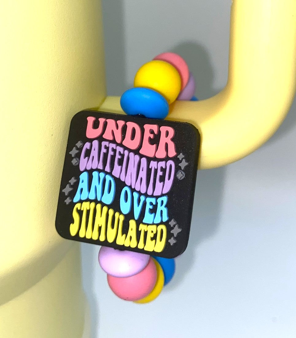 Accessorize your tumbler cup with this funny Under Caffeinated Over Stimulated silicone bead cup charm. These cup charms are made to clasp around your favorite tumbler's handle. They are simple to take off and put on, so depending on your mood for the day, you can swap them out easily!