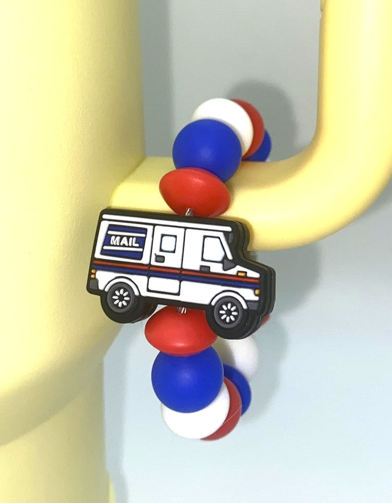 Accessorize your tumbler cup with this adorable US Postal Service Mail Truck silicone bead cup charm. These cup charms are made to clasp around your favorite tumbler's handle. They are simple to take off and put on, so depending on your mood for the day, you can swap them out easily!