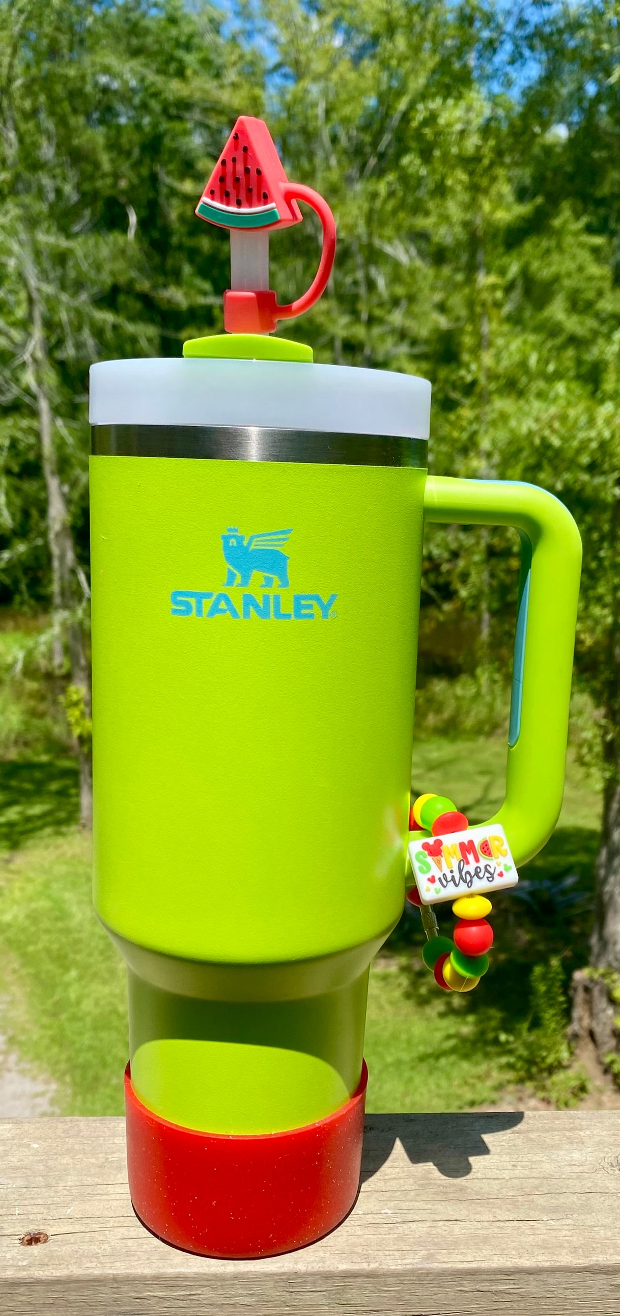Accessorize your favorite tumbler cup with this adorable Watermelon Slice 3D Straw Topper. This cover fits 10mm/0.4inch straws and is compatible with Stanley 30 & 40 oz tumblers straws. Made from silicone.