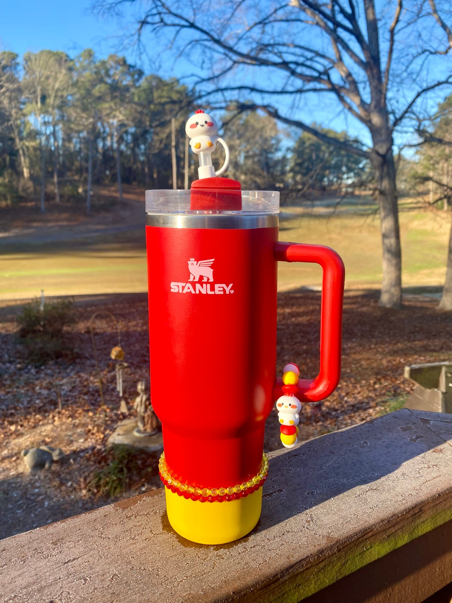 Accessorize your favorite tumbler cup with this adorable White Chicken 3D Straw Topper. This cover fits 10mm/0.4inch straws and is compatible with Stanley 30 & 40 oz tumblers straws. Made from silicone.