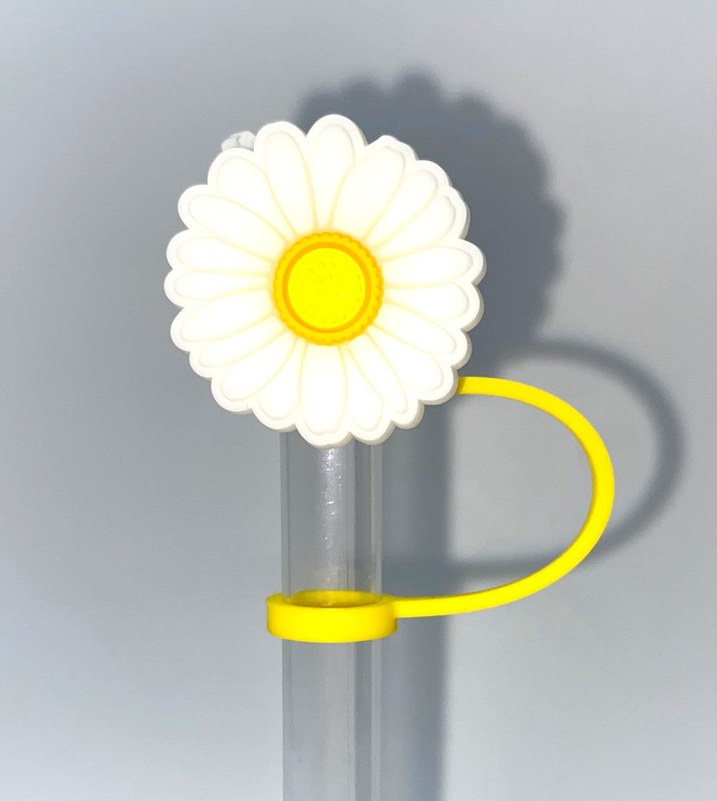 Accessorize your favorite tumbler cup with this adorable White Daisy Flower Straw Topper. This cover fits 10mm/0.4inch straws and is compatible with Stanley 30 & 40 oz tumblers straws. Made from silicone.
