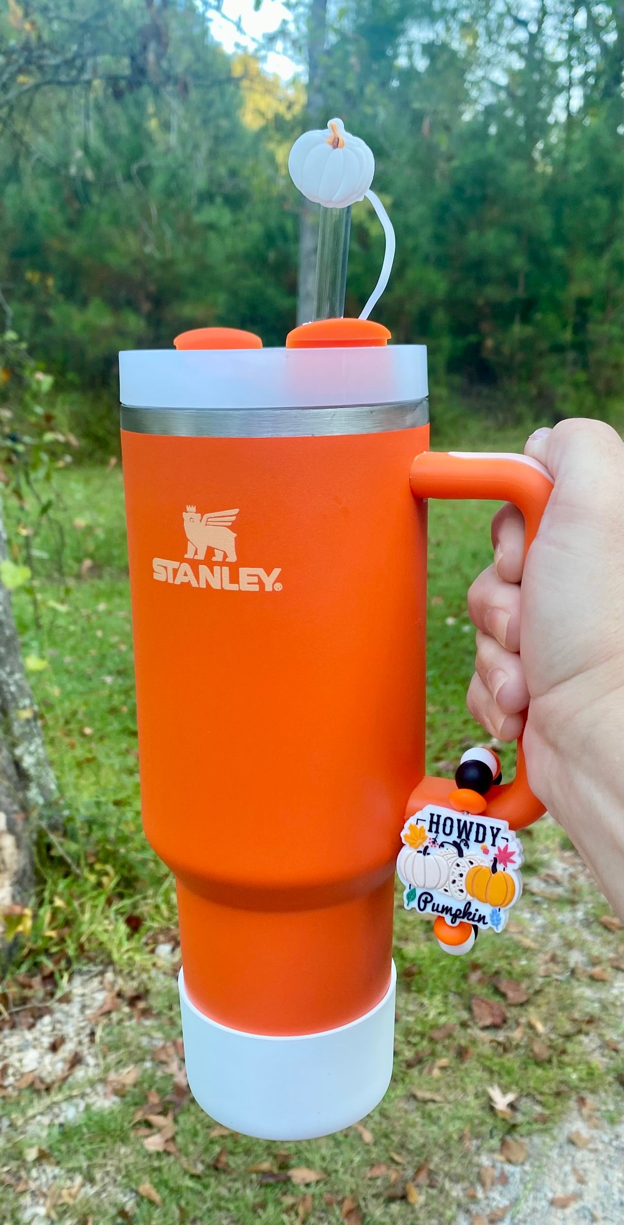 Accessorize your favorite tumbler cup with this adorable White Pumpkin Straw Topper. This cover fits 10mm/0.4inch straws and is compatible with Stanley 30 & 40 oz tumblers straws. Made from silicone.