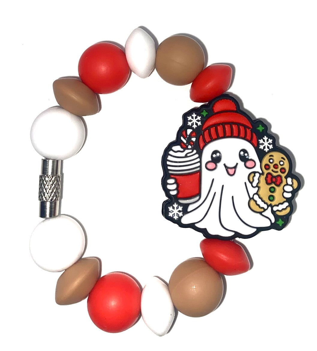 Accessorize your tumbler cup with this adorable Winter Christmas Ghost Halloween silicone bead cup charm. These cup charms are made to clasp around your favorite tumbler's handle. They are simple to take off and put on, so depending on your mood for the day, you can swap them out easily!