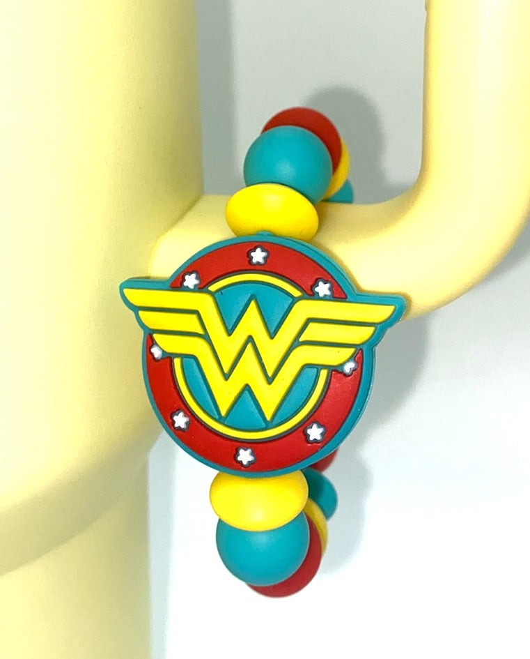 Accessorize your tumbler cup with this amazing Wonderful Woman Super Hero Logo silicone bead cup charm. These cup charms are made to clasp around your favorite tumbler's handle. They are simple to take off and put on, so depending on your mood for the day, you can swap them out easily!