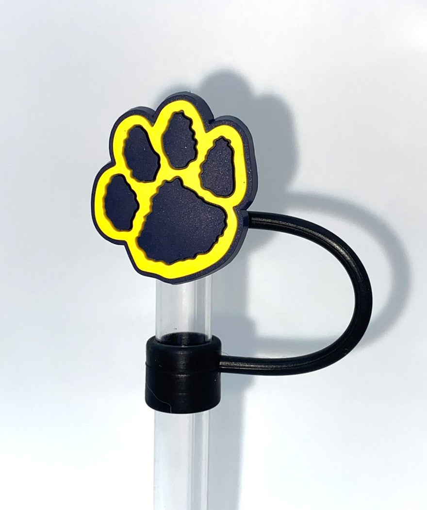 Accessorize your favorite tumbler cup with this adorable Yellow & Navy Blue/Black Dog Paw Straw Topper. This cover fits 10mm/0.4inch straws and is compatible with Stanley 30 & 40 oz tumblers straws. Made from silicone.